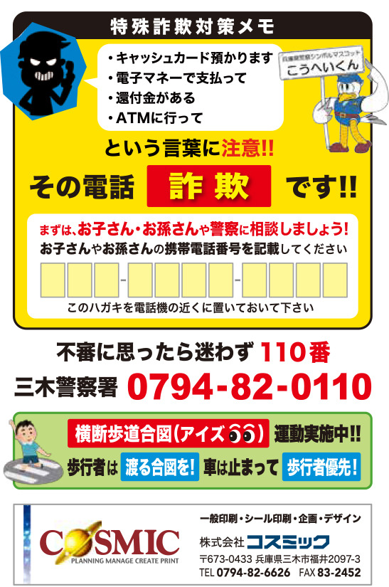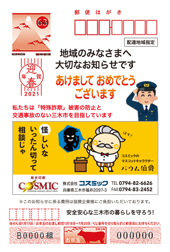 協賛型 特殊詐欺防止の注意喚起キャンペーンの年賀状に協賛させていただきました。